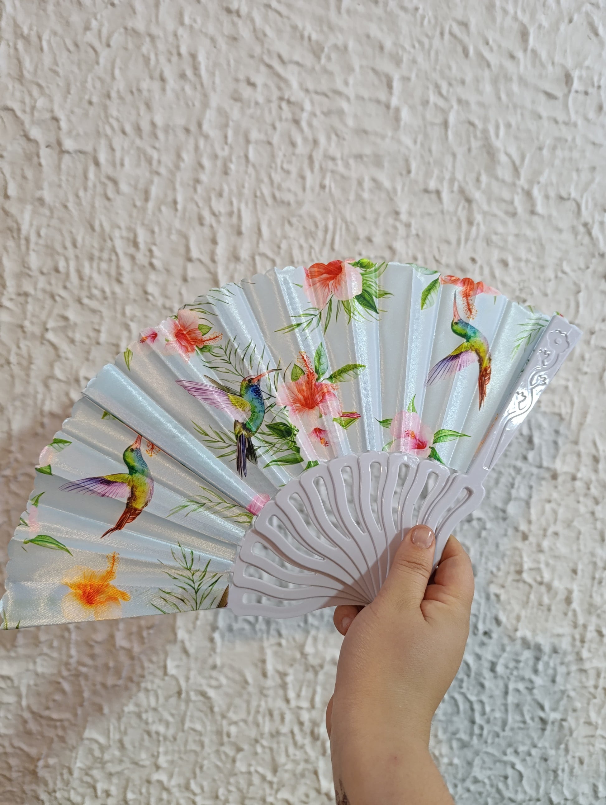 1 DOCENA - ABANICOS DE MANO EN TELA FLORALES