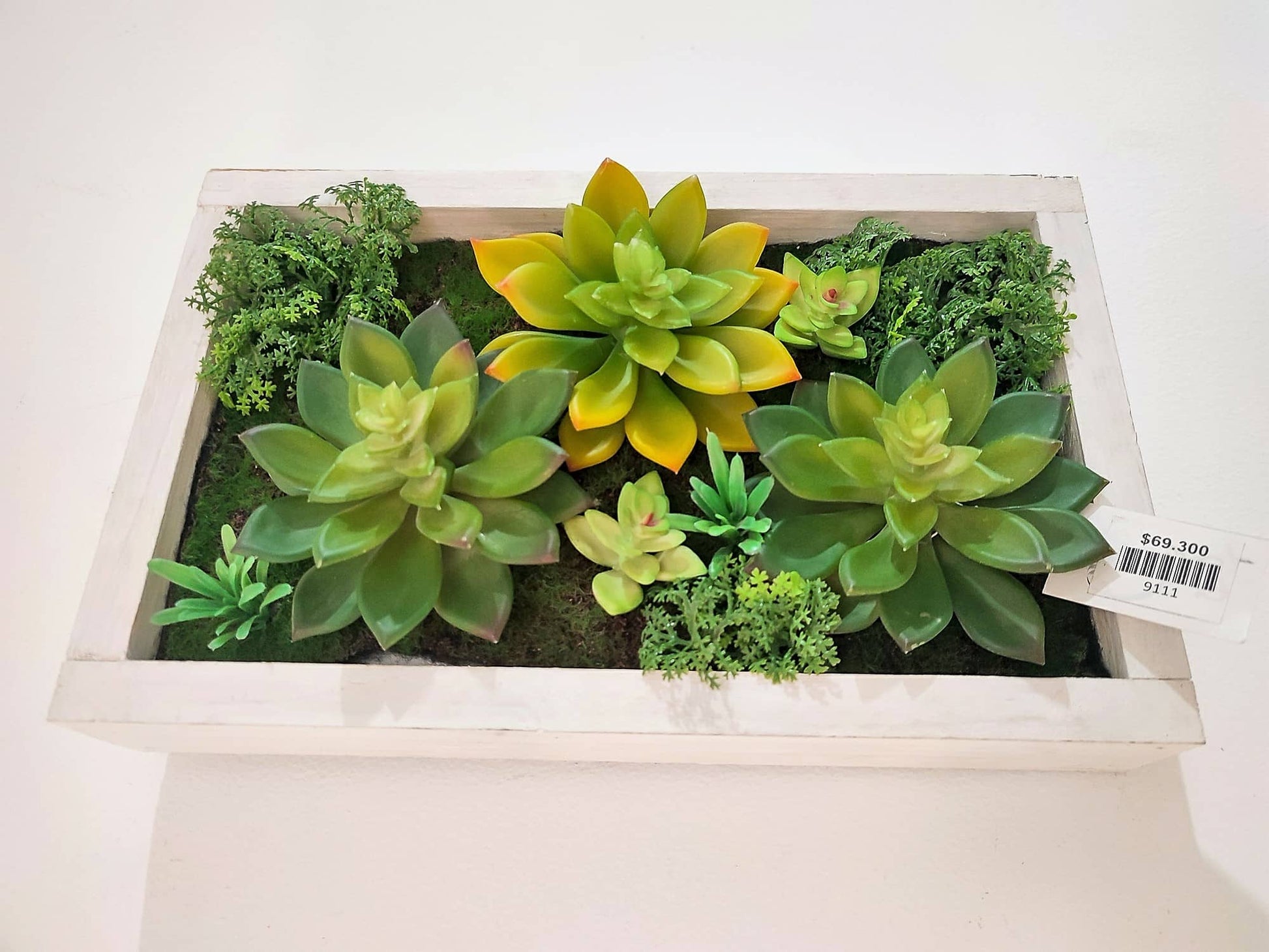 CAJITA DE FOLLAJE BLANCA CON SUCULENTAS