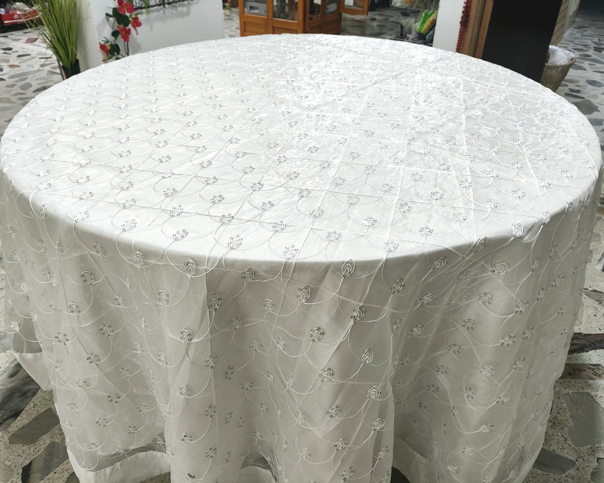 SOBRE MANTEL BLANCO ORGANZA CON LENTEJUELAS