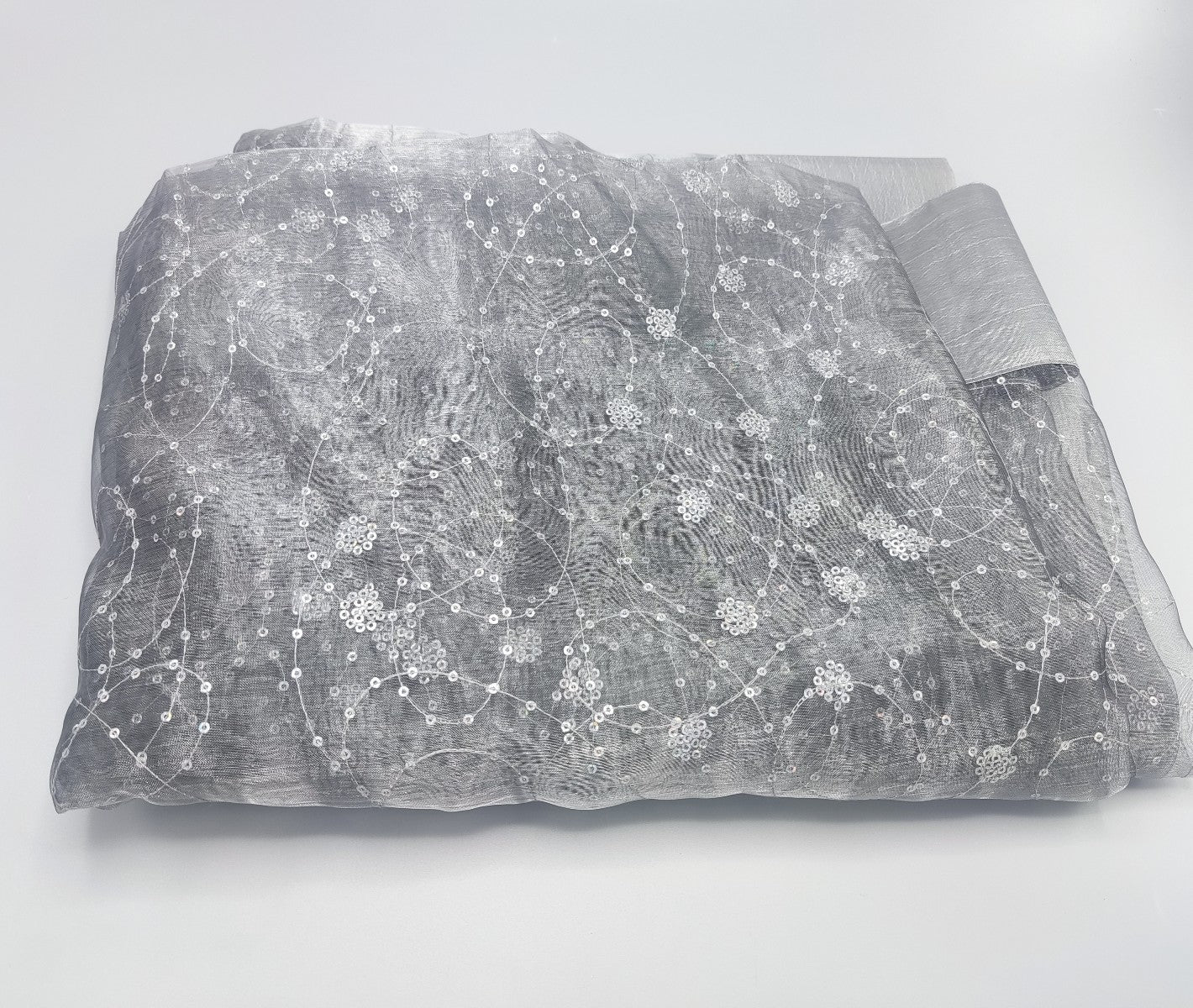 SOBRE MANTEL GRIS ORGANZA CON LENTEJUELAS